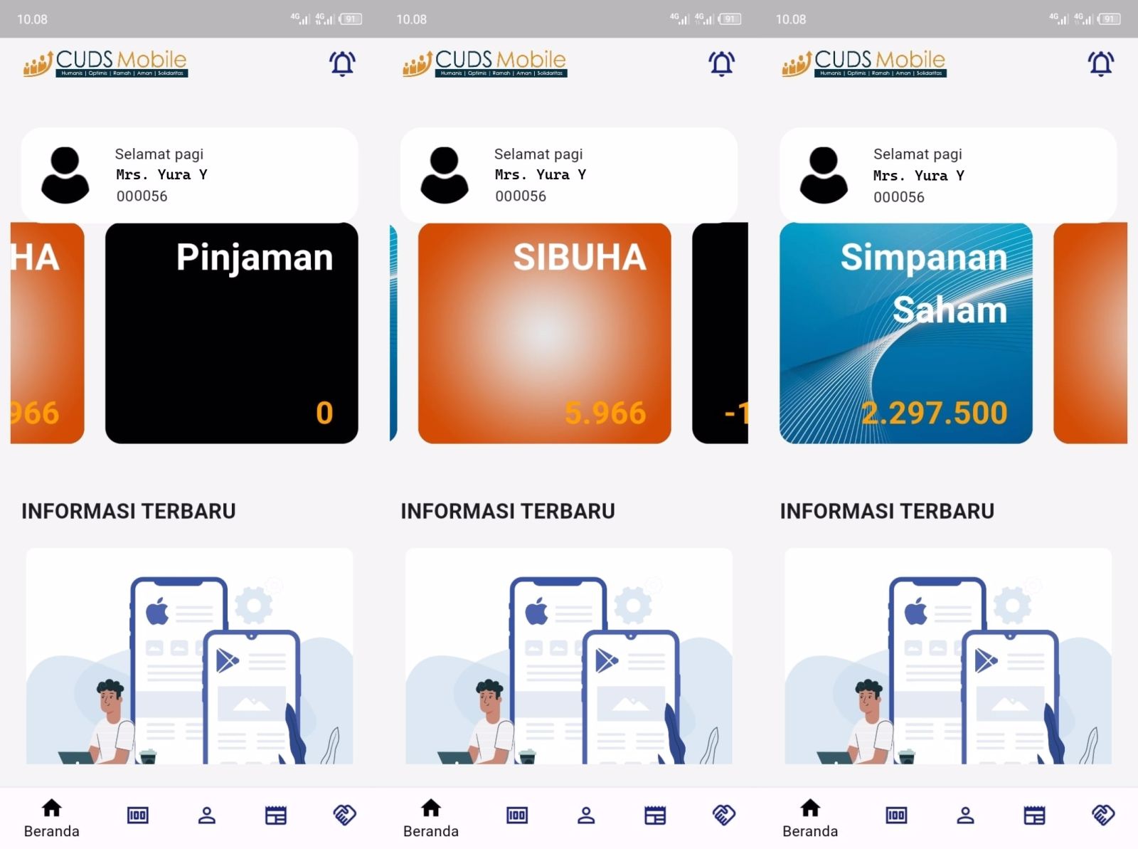 Salah satu bentuk Pelayanan yang di sediakan KSP CU DAMAI SEJAHTERA adalah Aplikasi CUDS MOBILE yang merupakan Aplikasi Informatif yang dapat membantu Anggota memantau setiap Transaksi dan Mutasi serta Informasi terbaru mengenai SIMPANAN DAN PINJAMAN di KSP CU DAMAI SEJAHTERA yang dapat di Akses Khusus oleh Anggota.